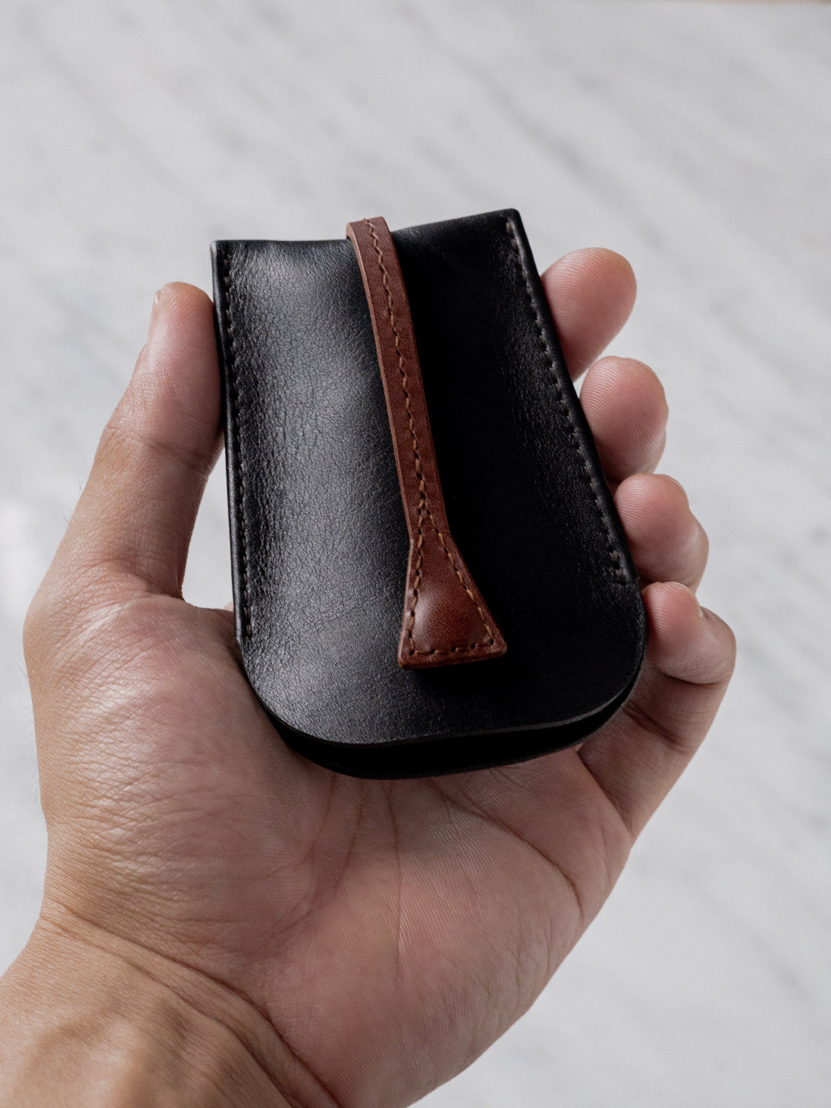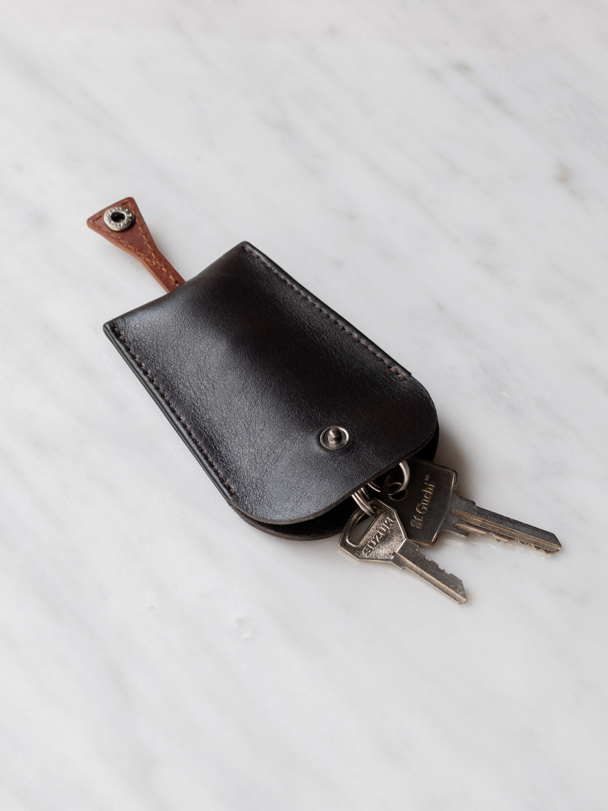 Keep your keys organized and effortlessly accessible with the Key Case, crafted from Italian full-grain leather and lined with soft suede. The Buttero leather cord lets you pull your keys out effortlessly, then satisfyingly snaps to the side of the case with a Japanese Hasi Hato snap button, keeping your keys securely in place.