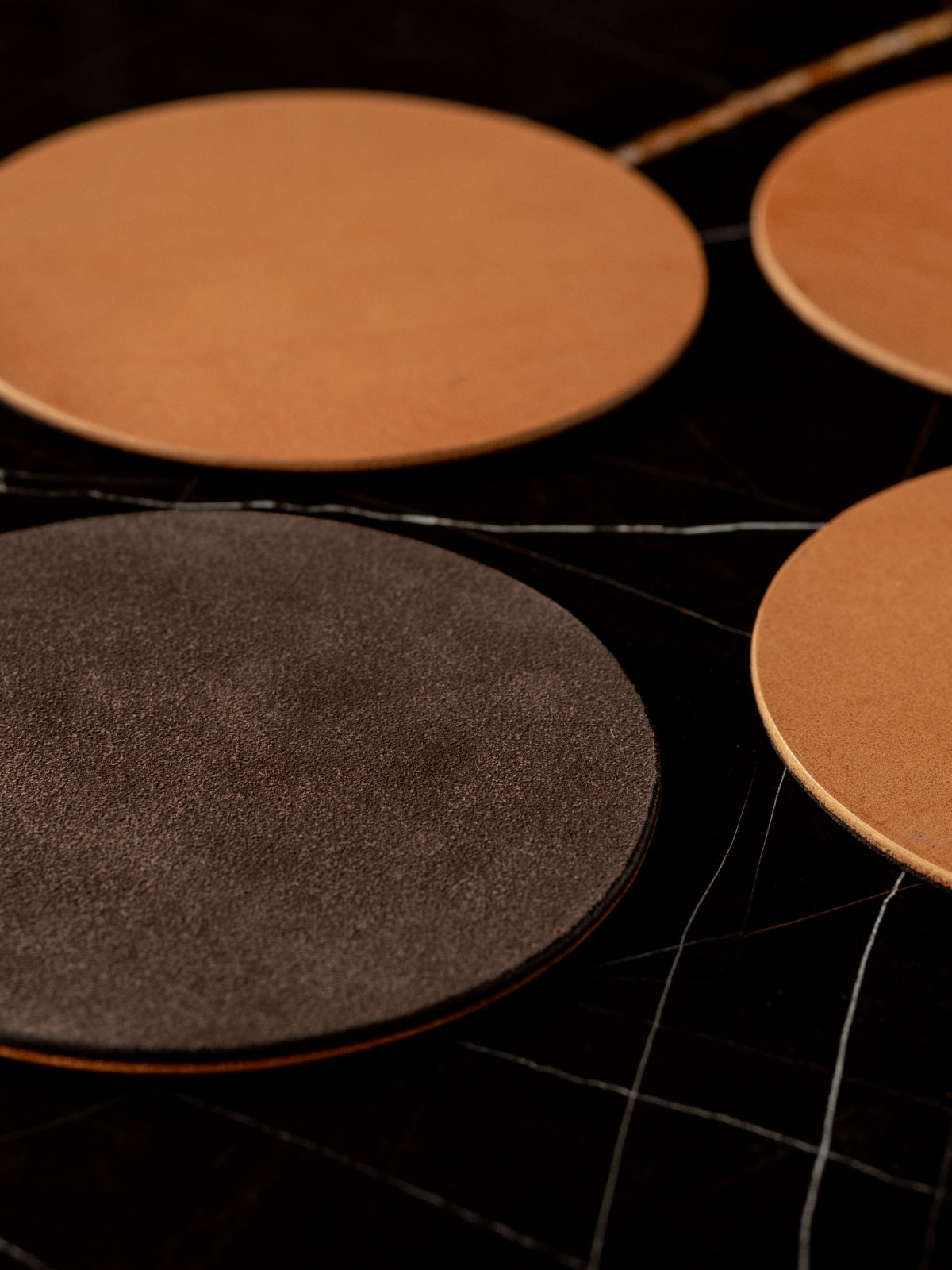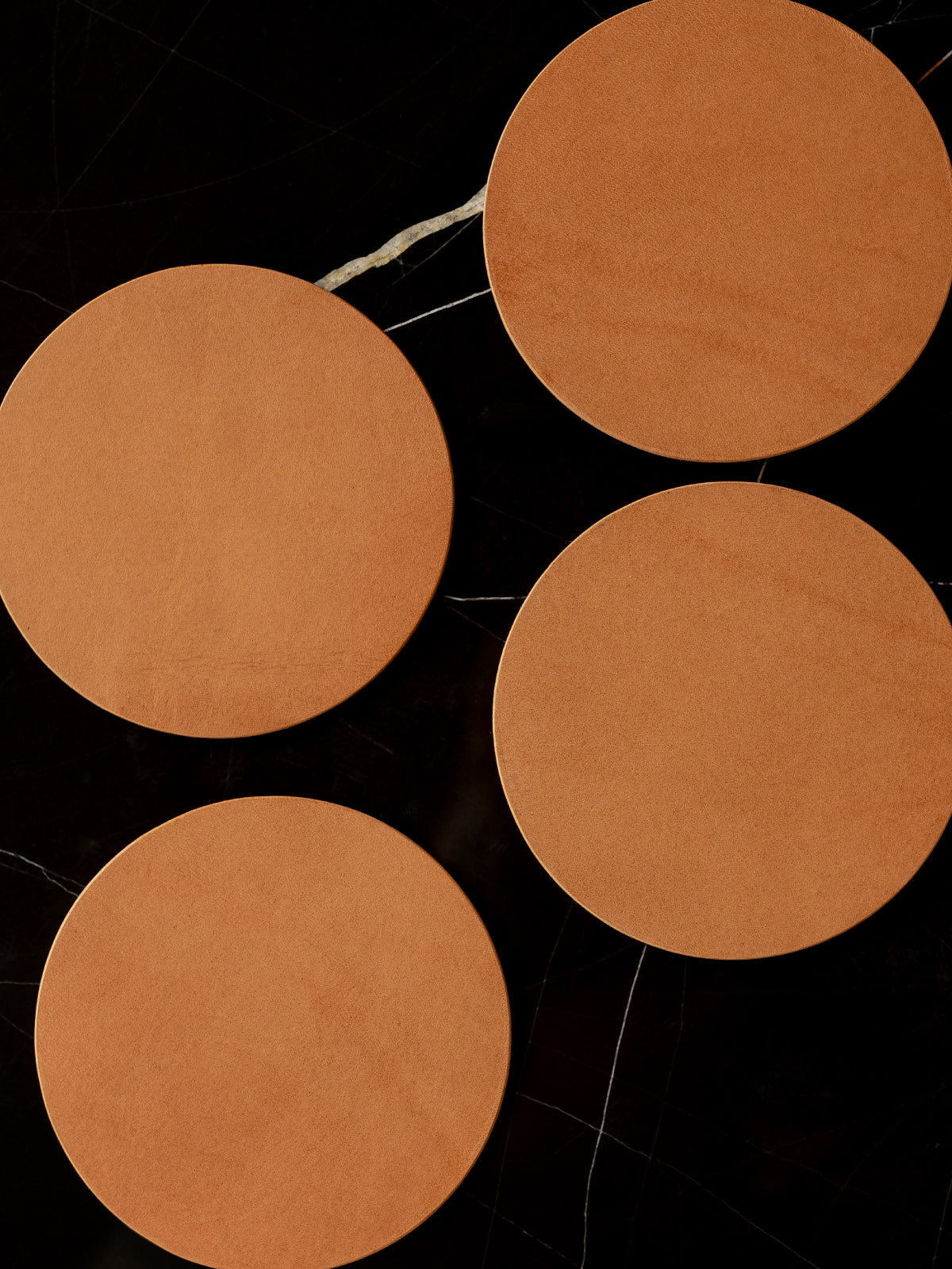 The natural oils in the leather will age the coasters beautifully, gradually gathering a deep and glossy patina with time and use.