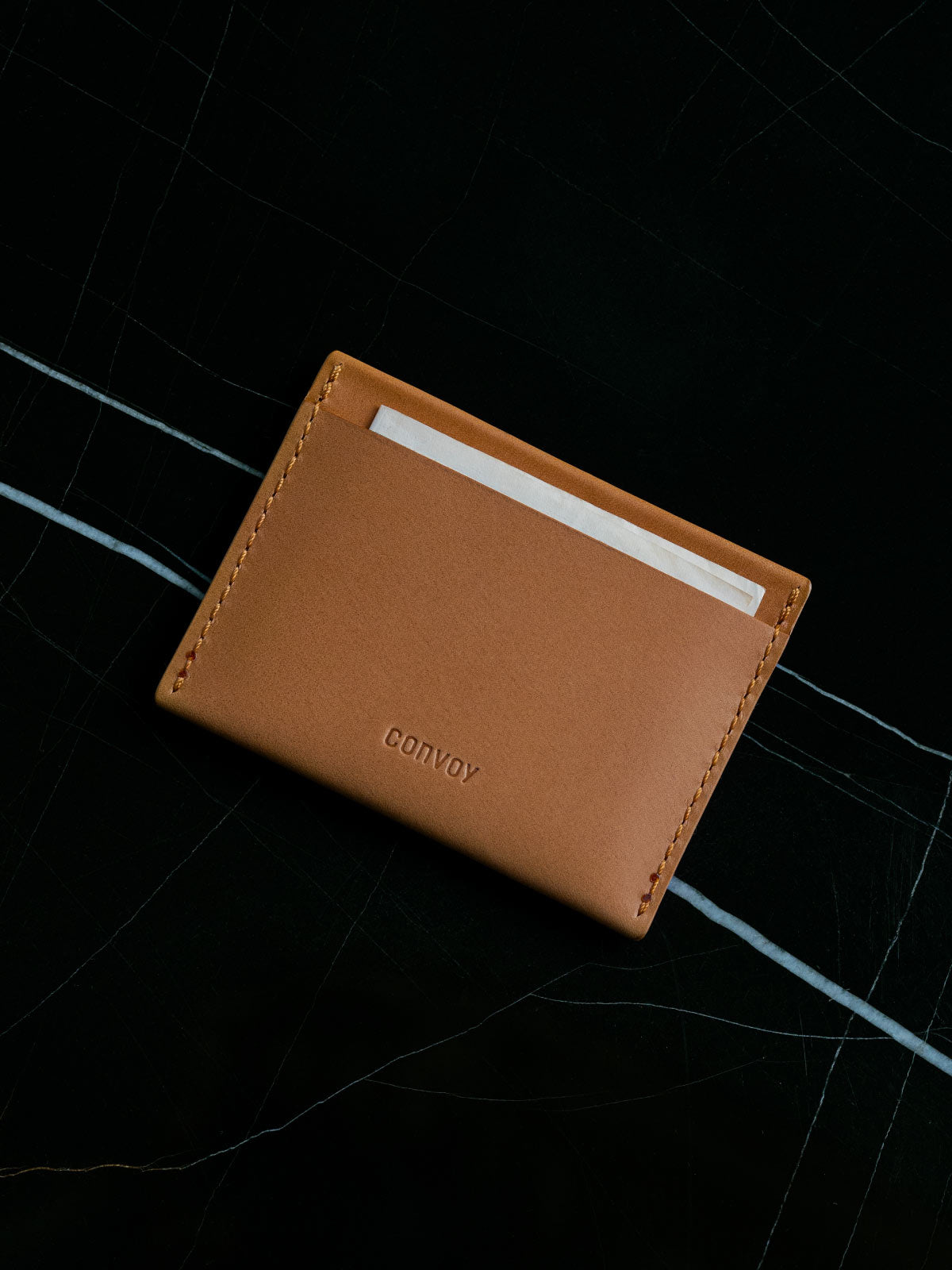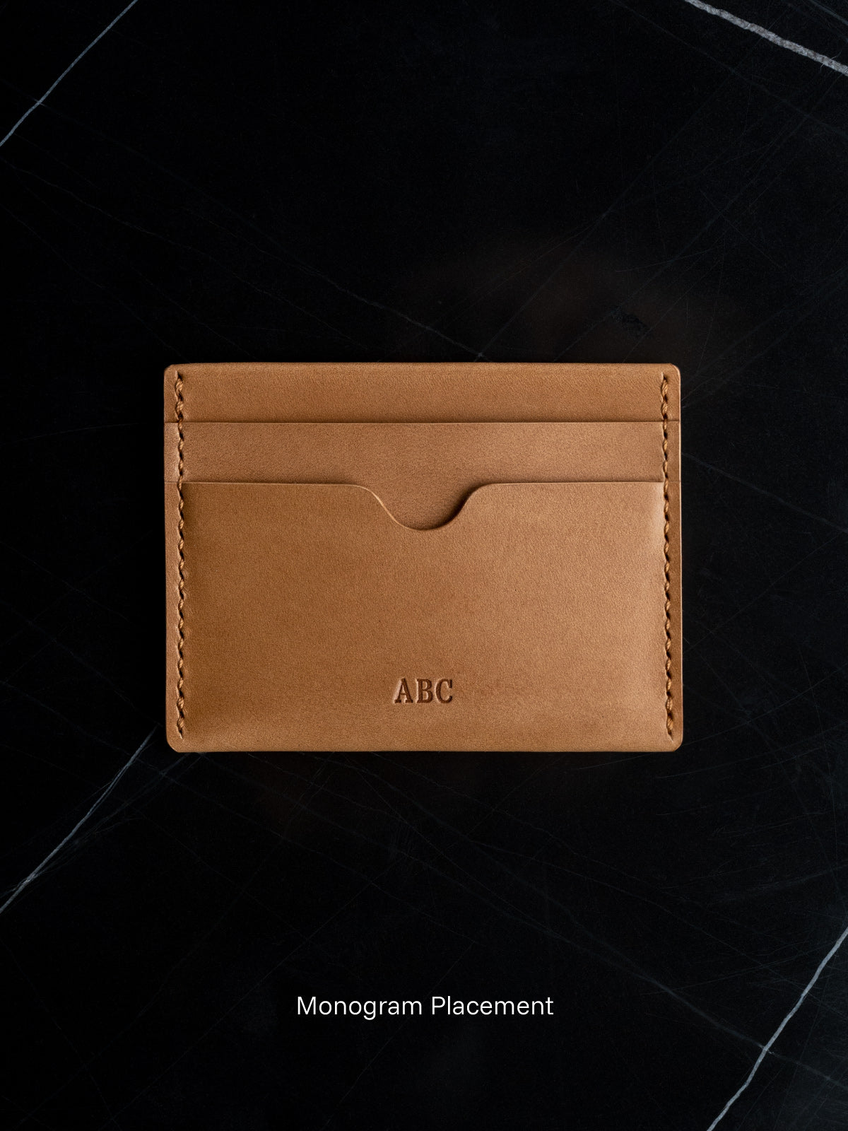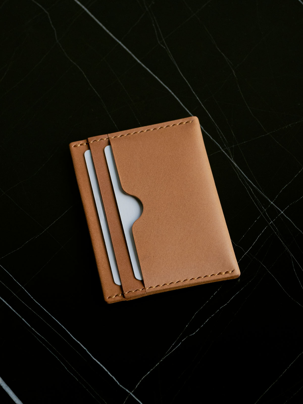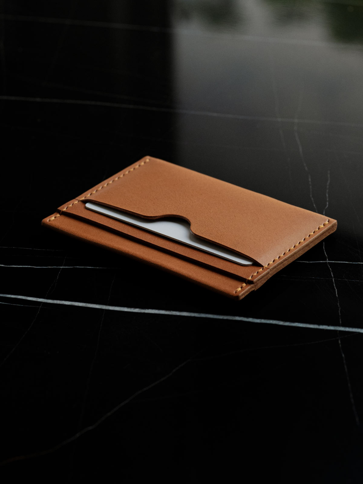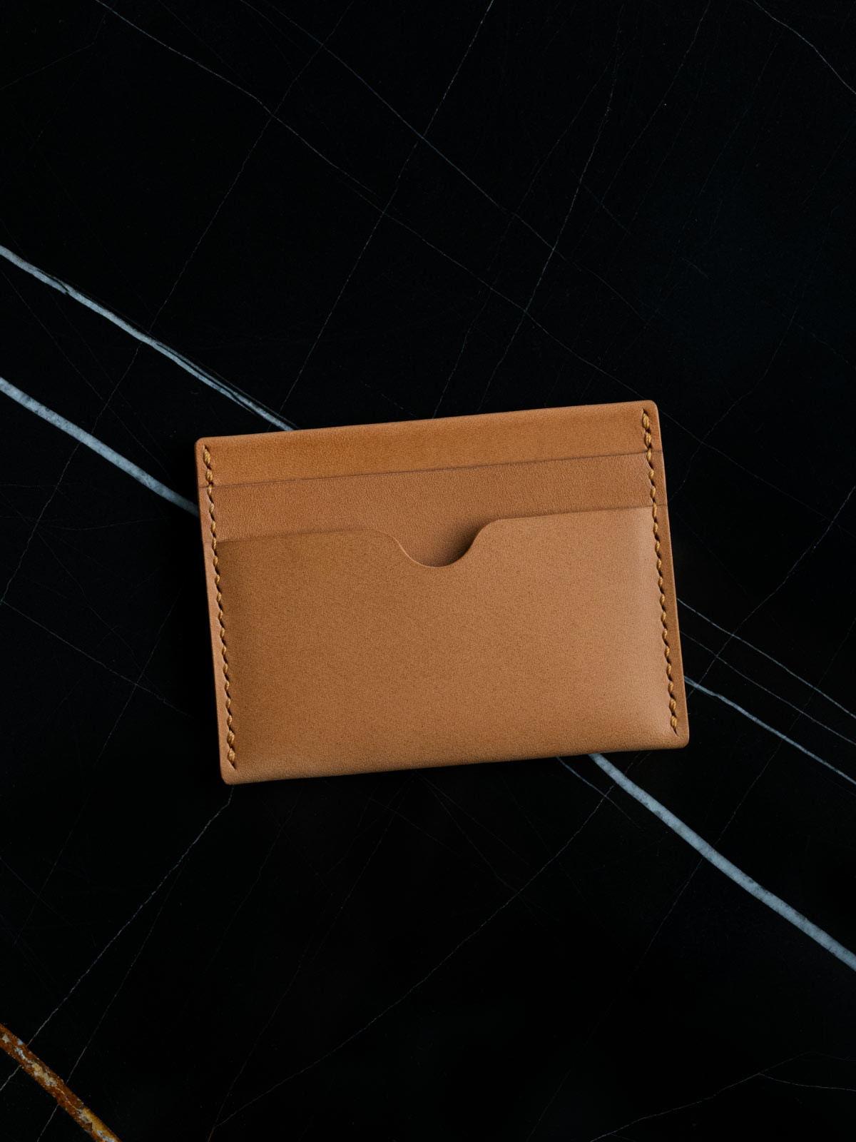 Designed to be slim and go with you everywhere, this minimal wallet is meant to keep your cards and cash organized in 3 separate pockets. Italian vegetable tanned Buttero leather is folded into pockets to reduce the amount of seams to only two, each of which are saddle stitched by hand with Japanese Vinymo MBT thread for durability.