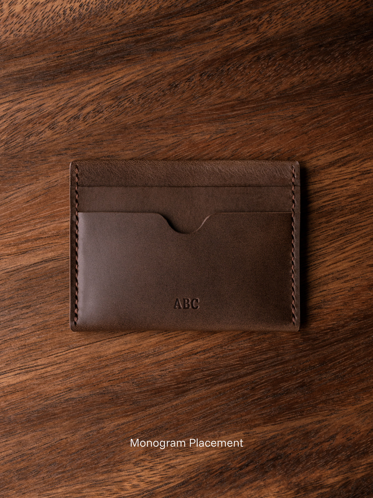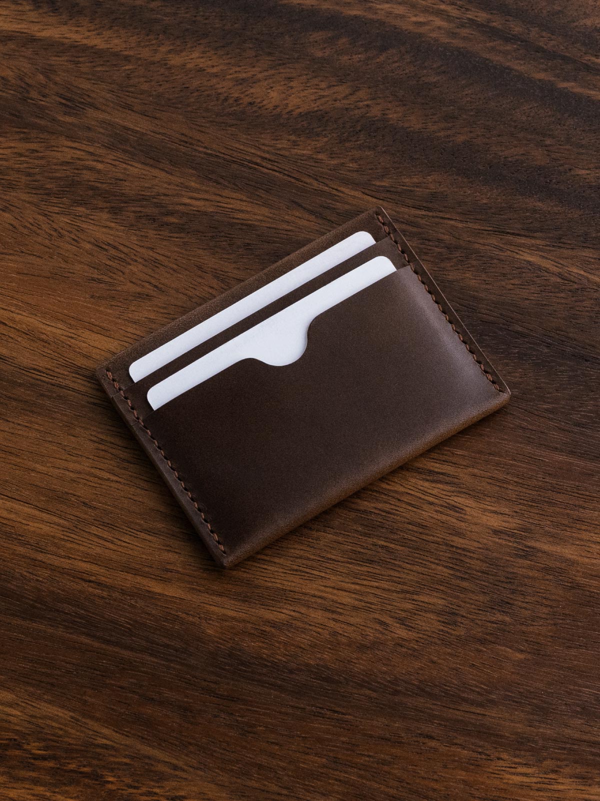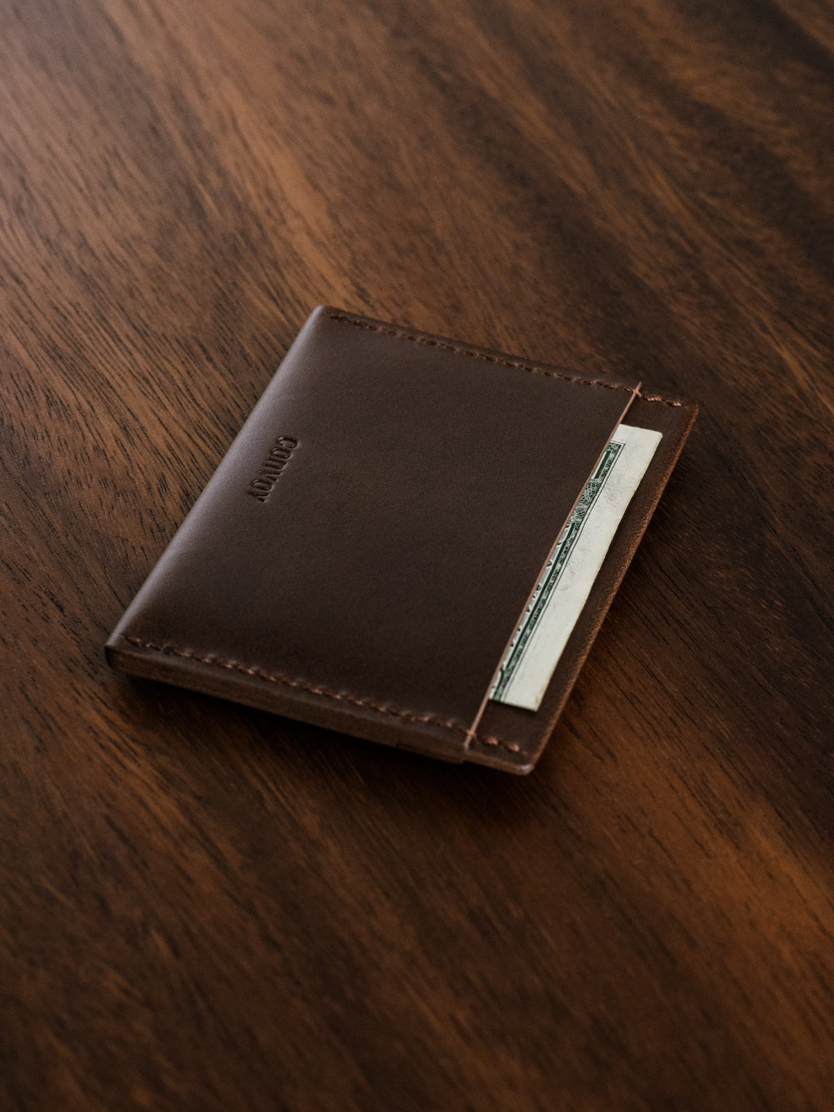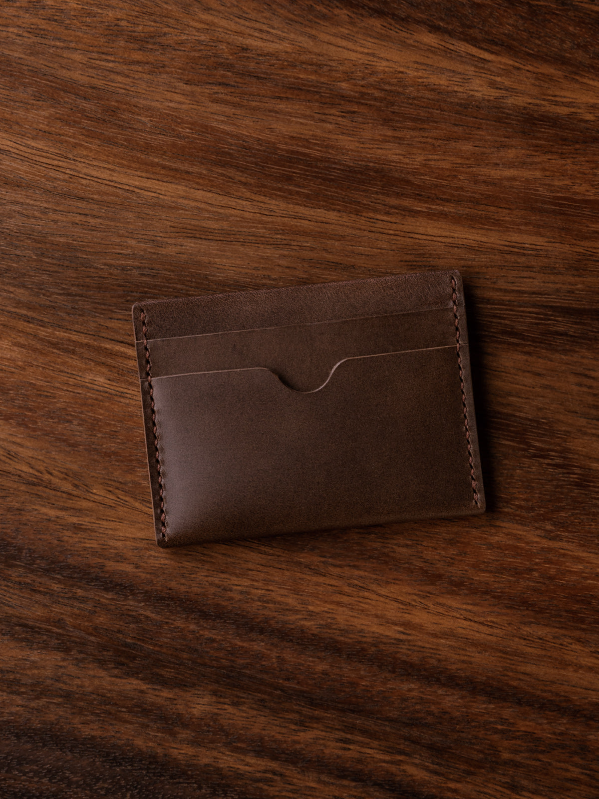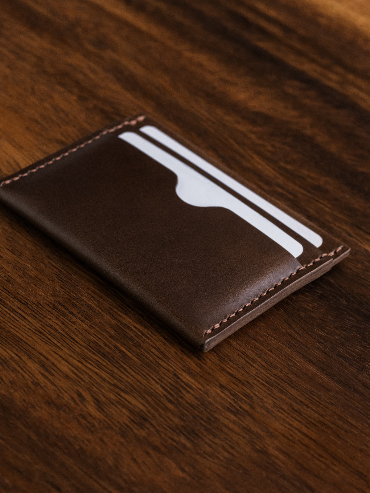 Designed to be slim and go with you everywhere, this minimal wallet is meant to keep your cards and cash organized in 3 separate pockets. Italian vegetable tanned Buttero leather is folded into pockets to reduce the amount of seams to only two, each of which are saddle stitched by hand with Japanese Vinymo MBT thread for durability.