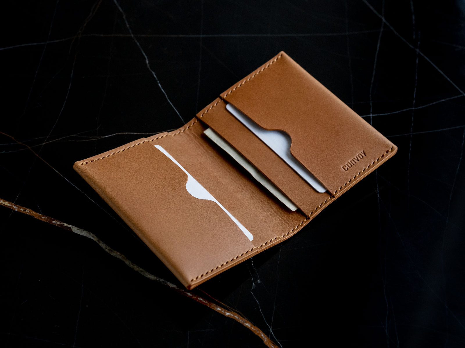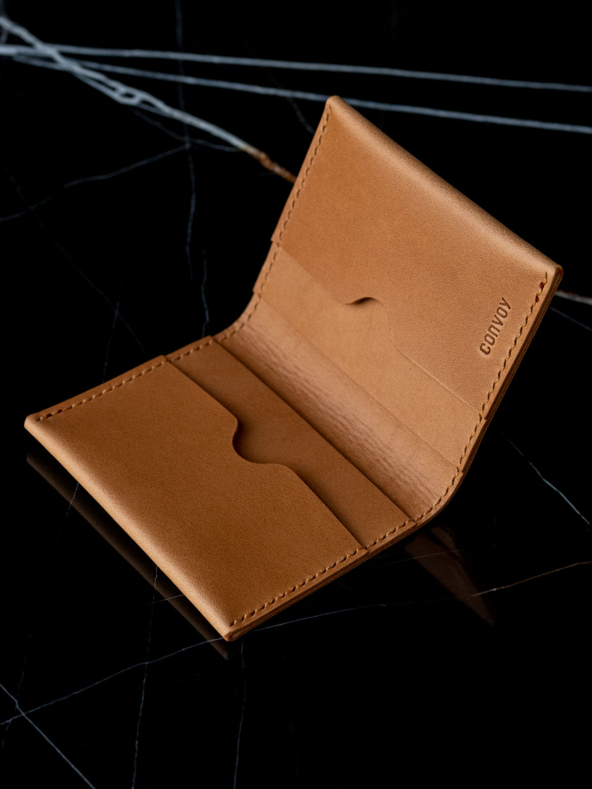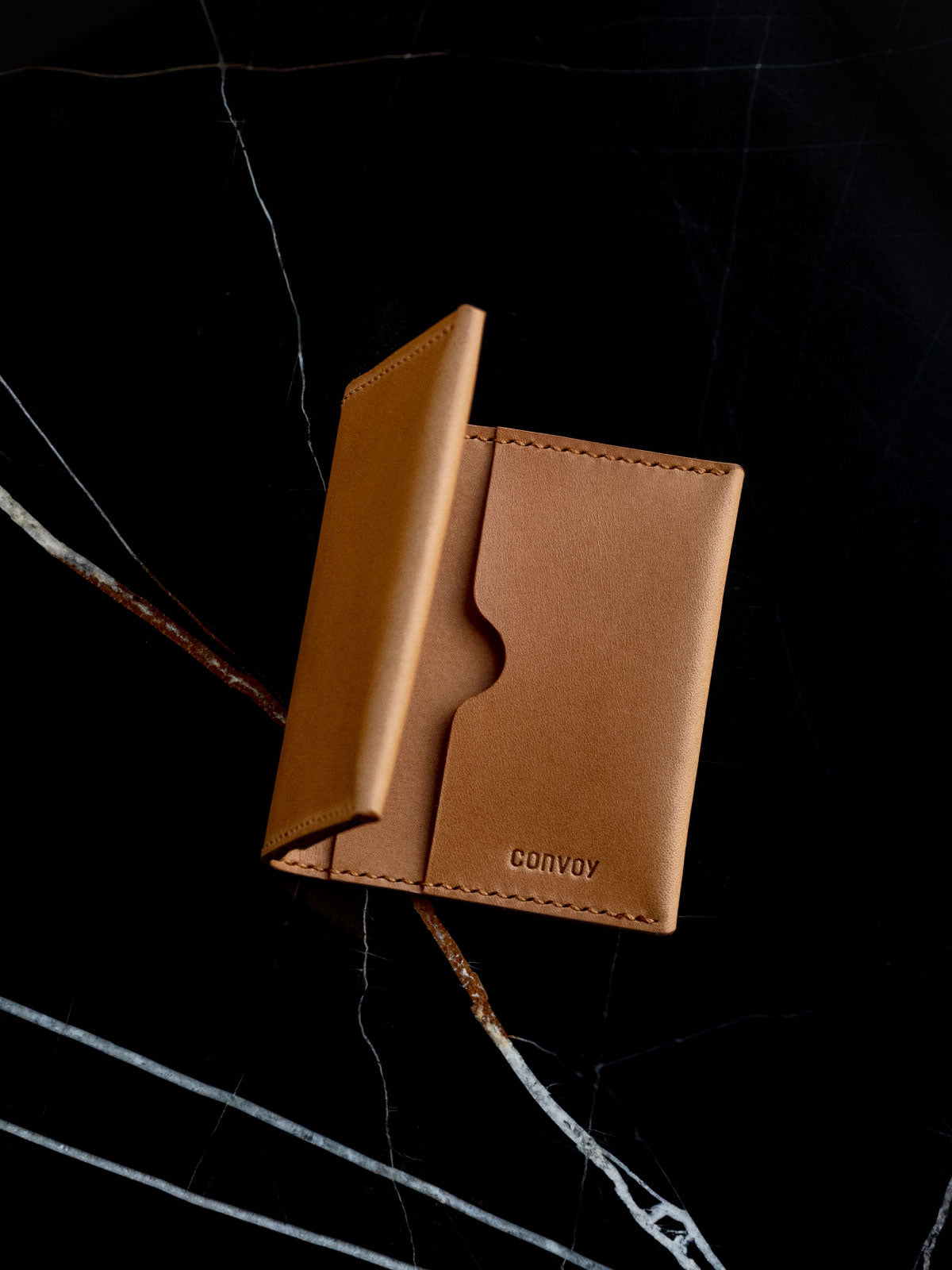 The vertical wallet offers all the functionality of a traditional wallet with the minimal look of a folded card case in Italian vegetable tanned Buttero leather.