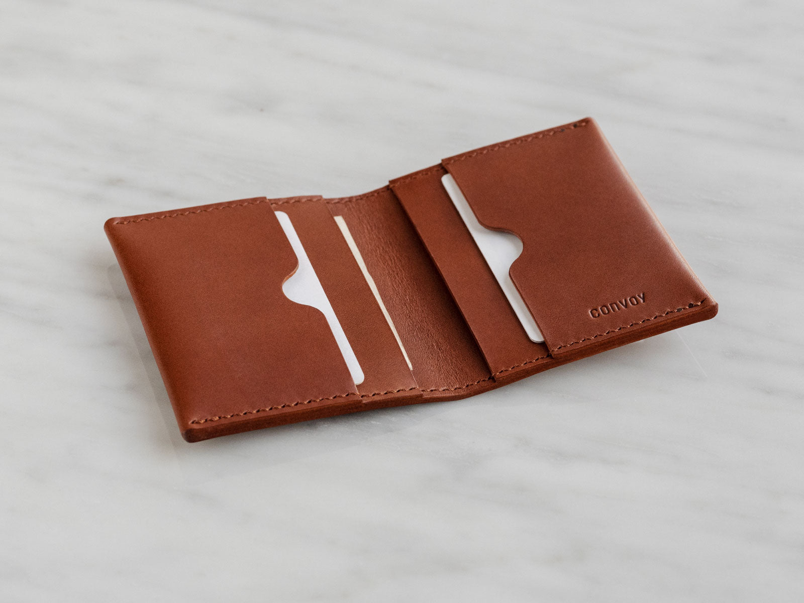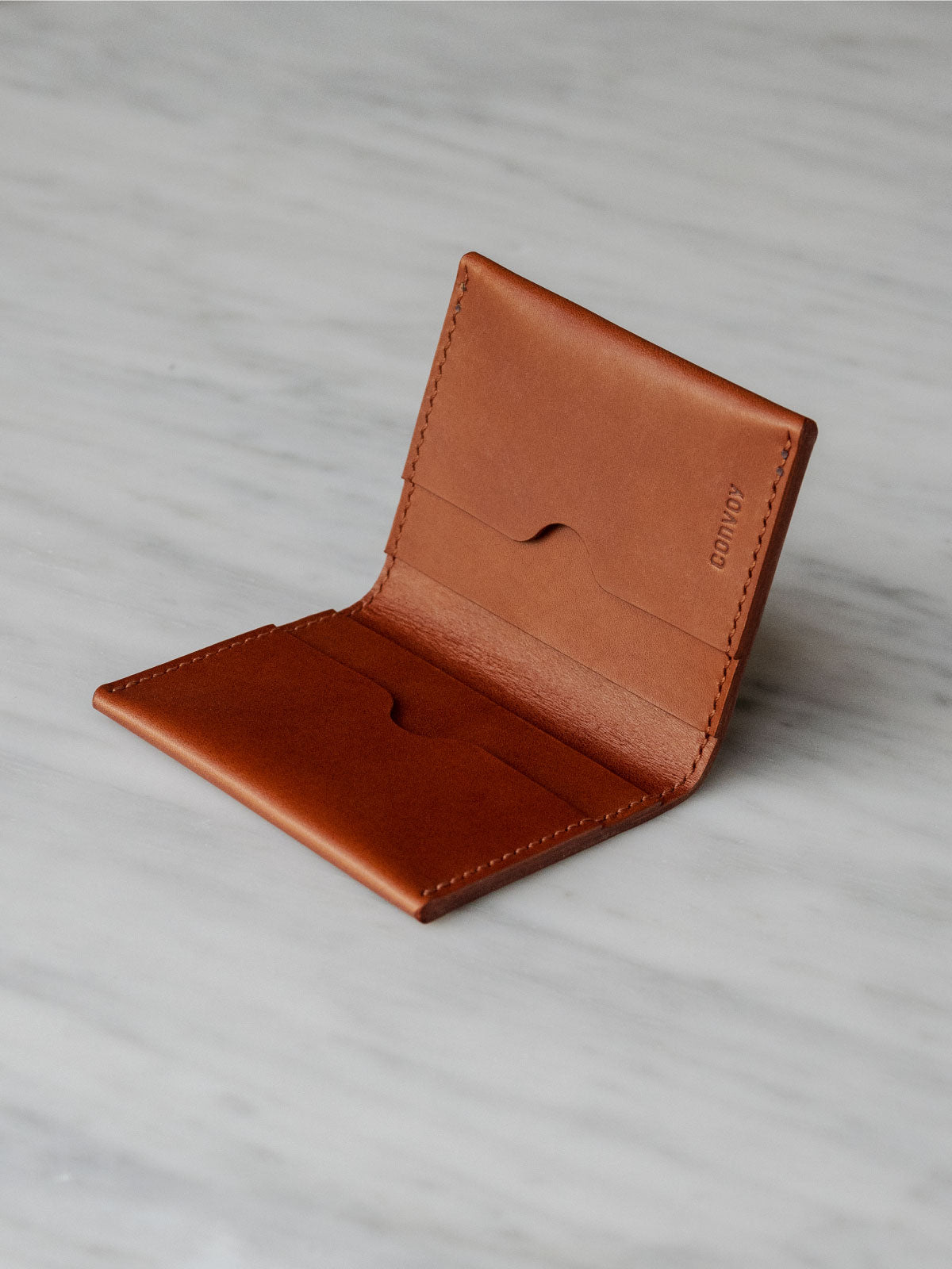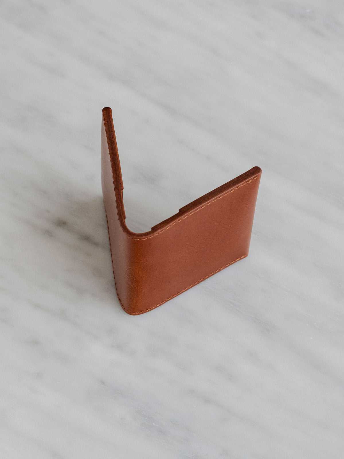 The vertical wallet offers all the functionality of a traditional wallet with the minimal look of a folded card case in Italian vegetable tanned Buttero leather.