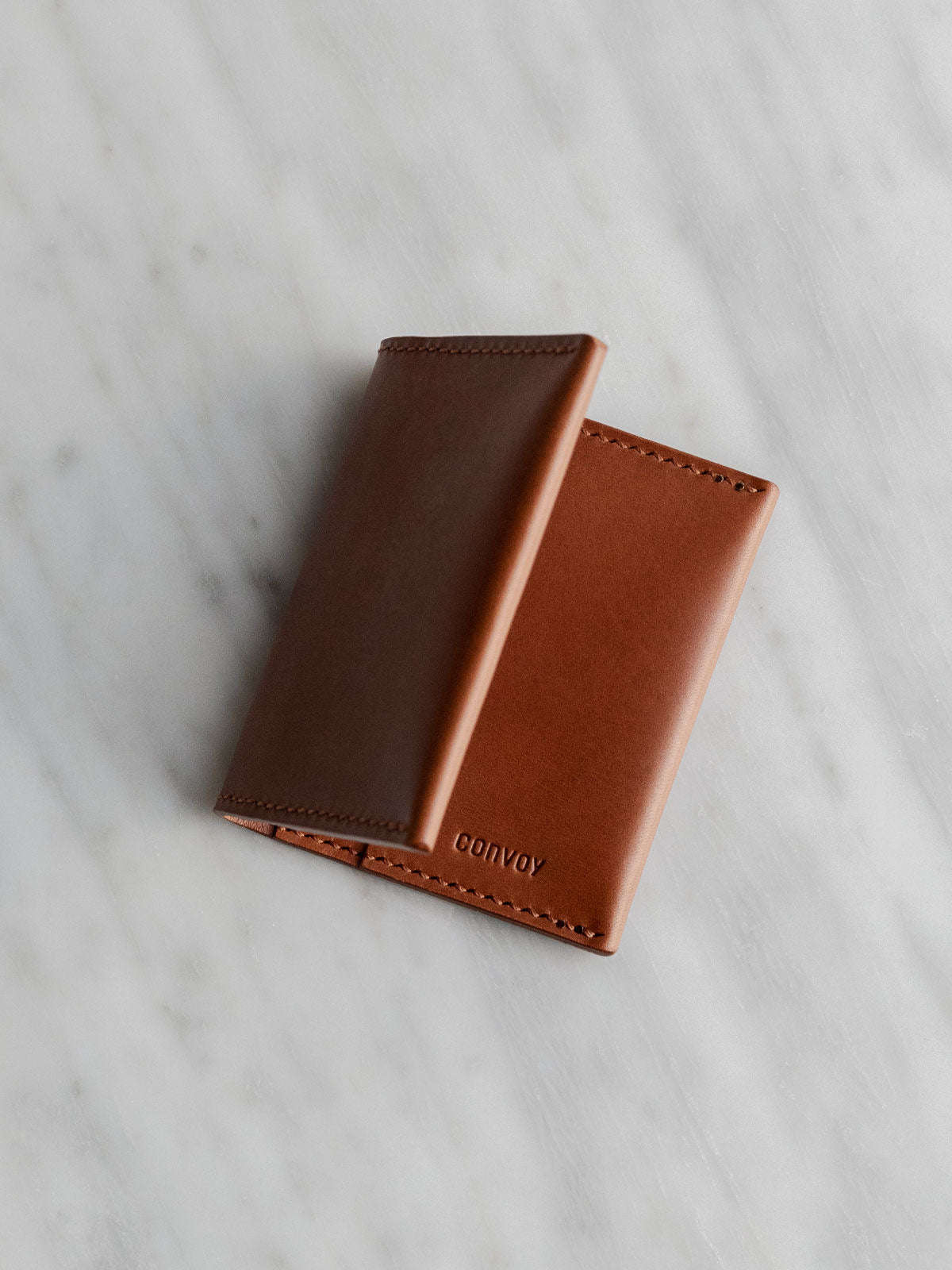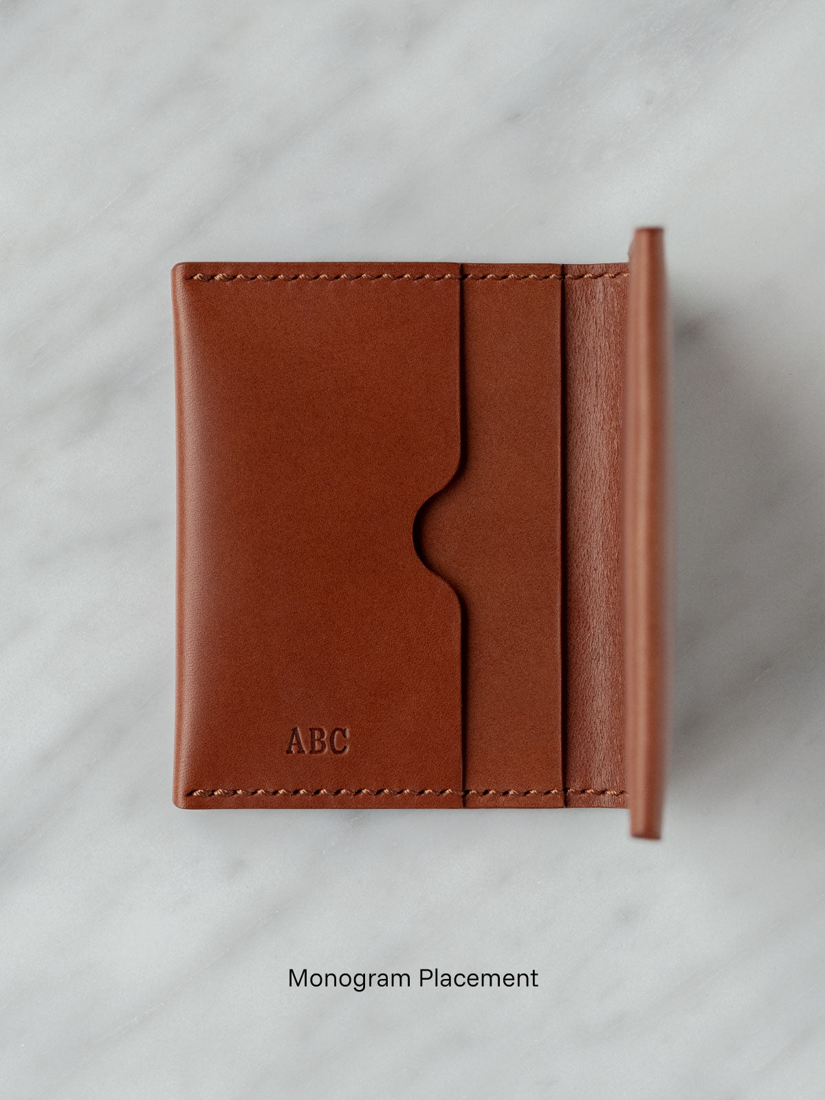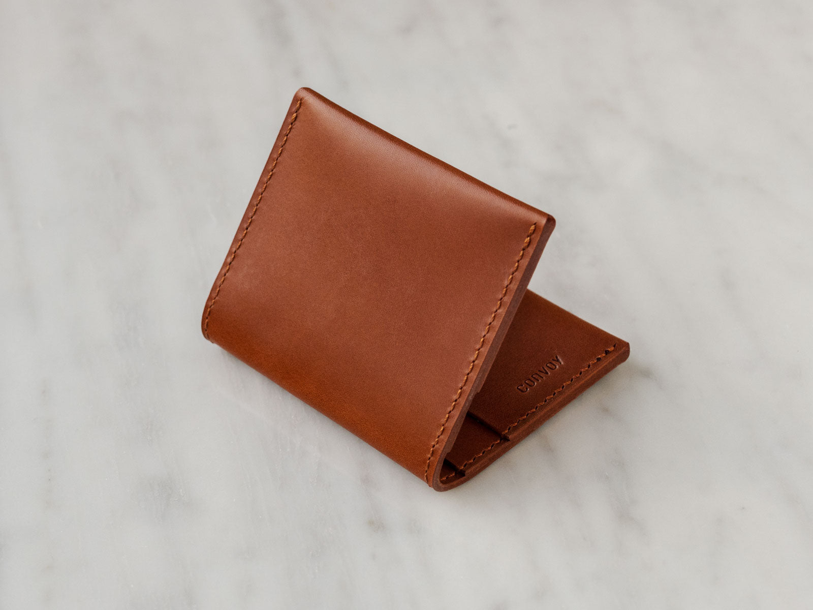 The vertical wallet offers all the functionality of a traditional wallet with the minimal look of a folded card case in Italian vegetable tanned Buttero leather.