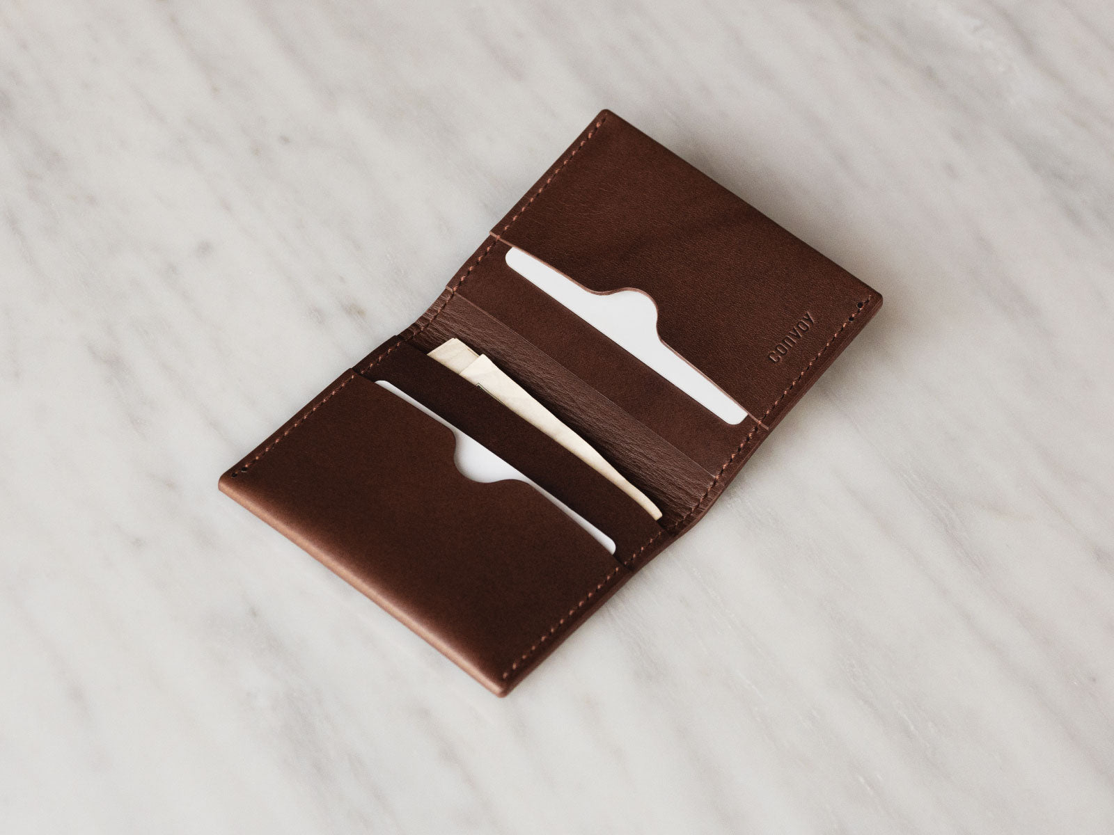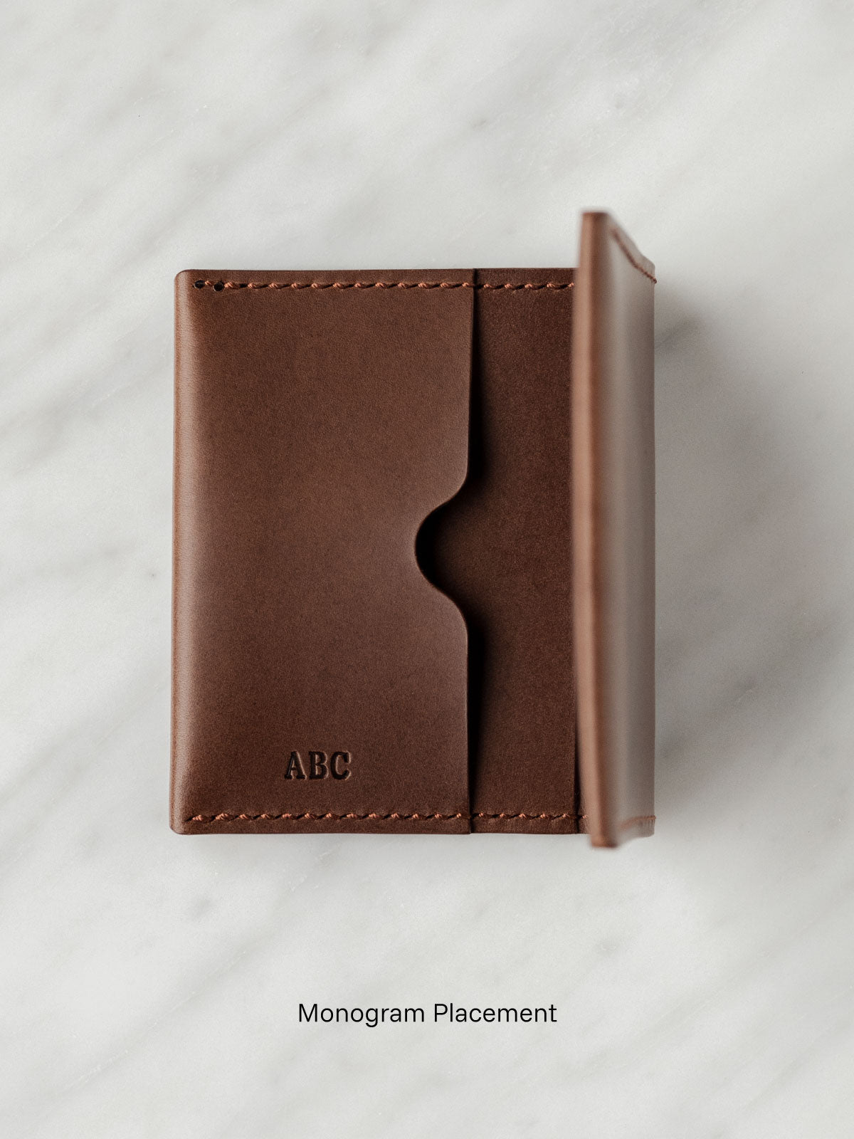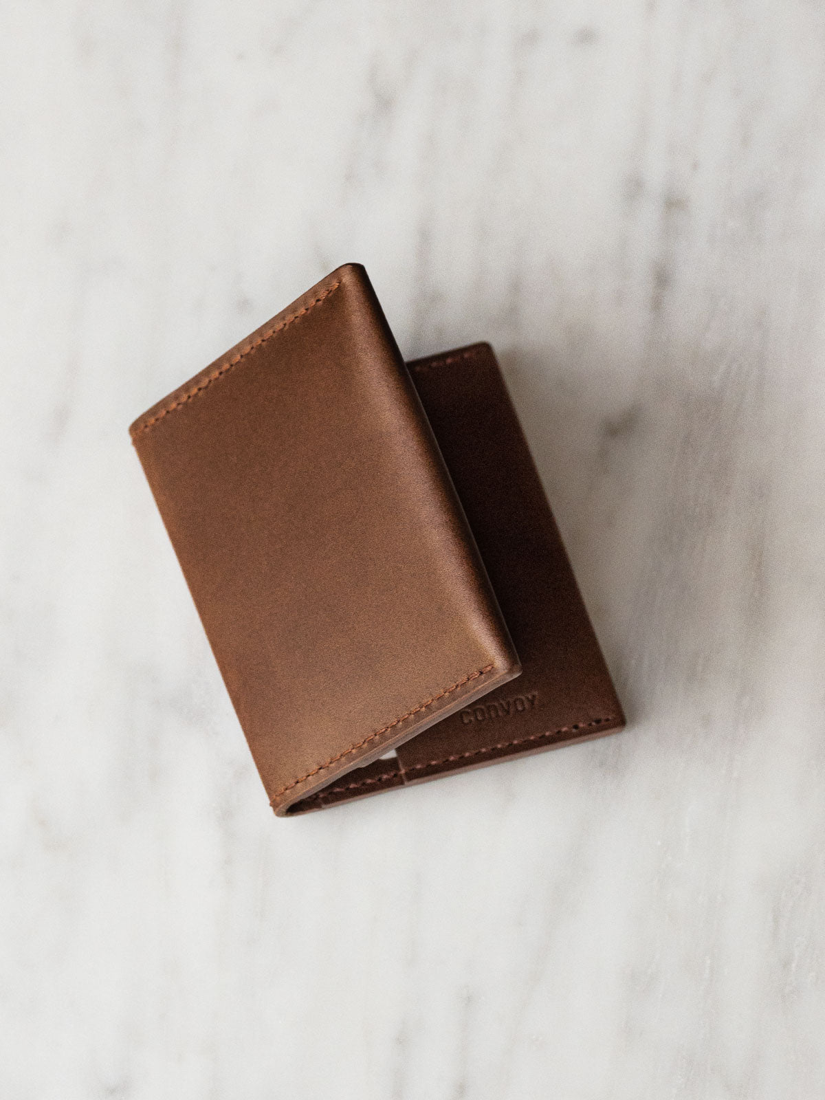 The vertical wallet offers all the functionality of a traditional wallet with the minimal look of a folded card case in Italian vegetable tanned Buttero leather.