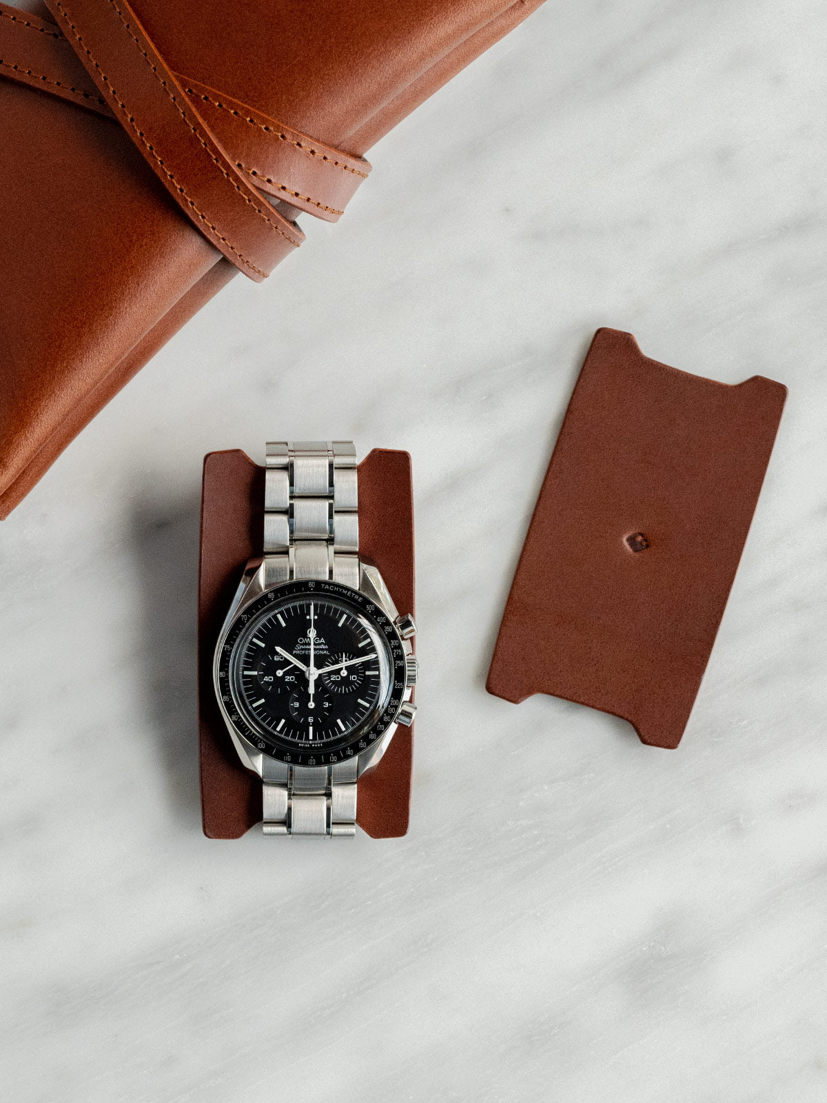 It includes two Buttero leather watch rests for your watches to wrap around, protecting their casebacks from scratches.