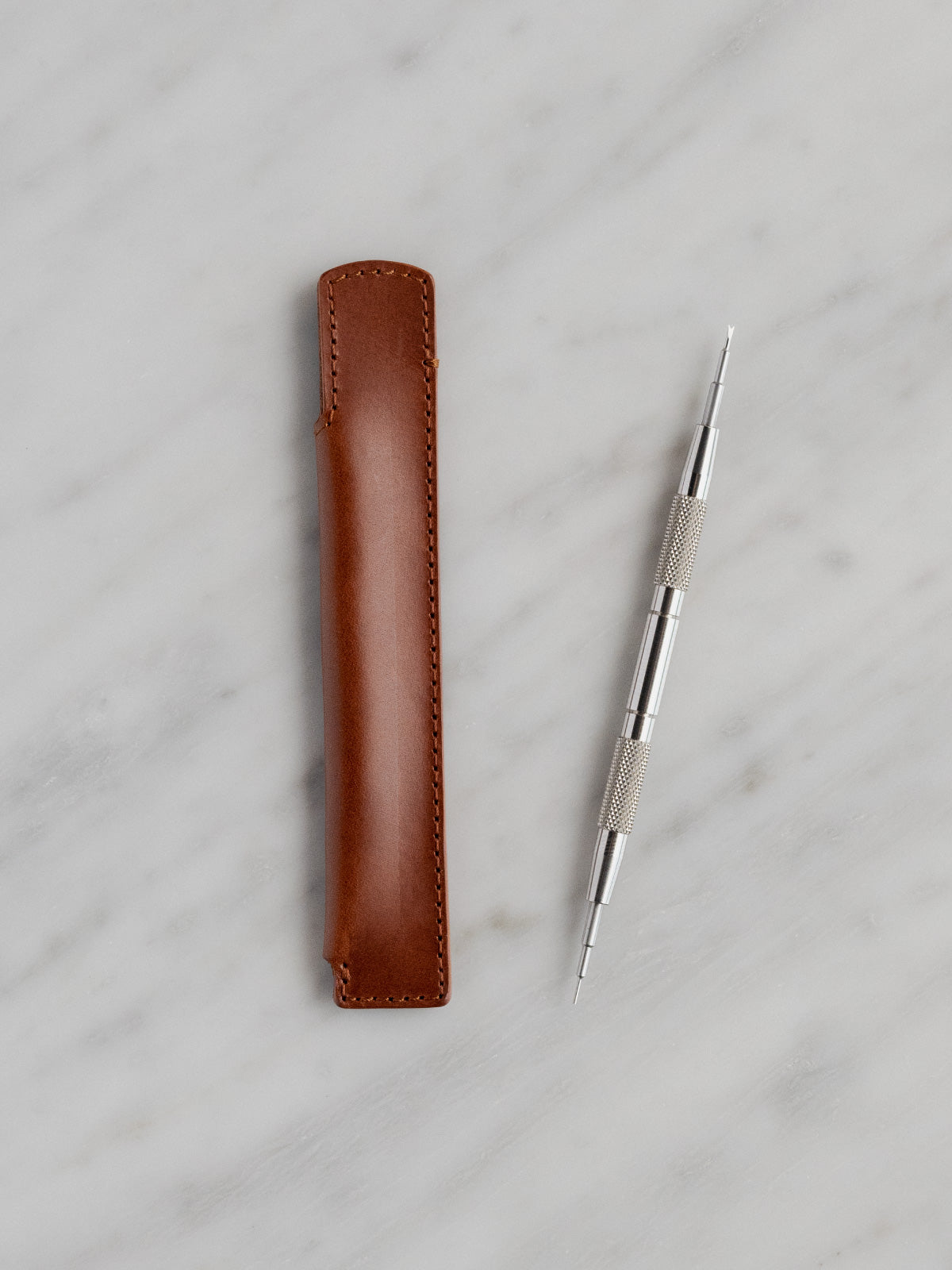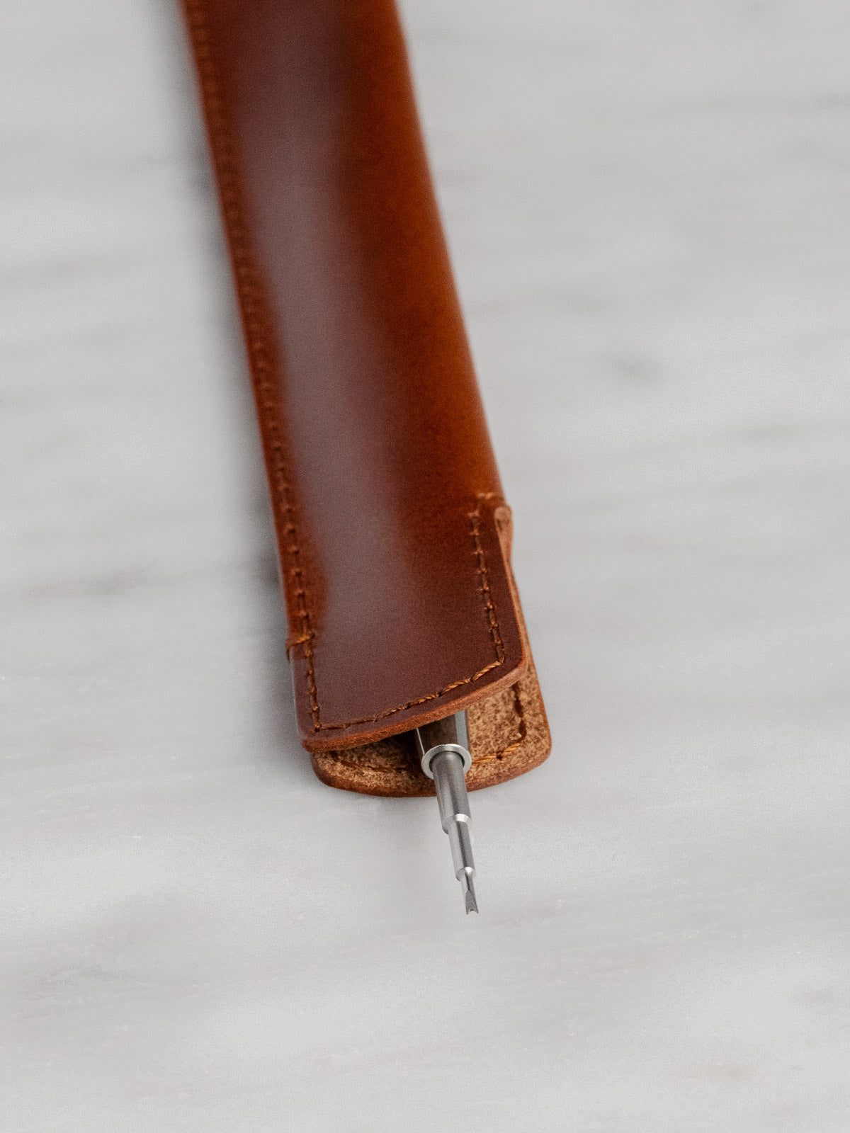 The spring bar tool pouch is designed to snugly wrap your favourite strap changing tool in a fold of Italian vegetable tanned Buttero leather, protecting the tips of your spring bar tool. The edges are burnished by hand to a smooth finish and side stitched for extra reinforcement.