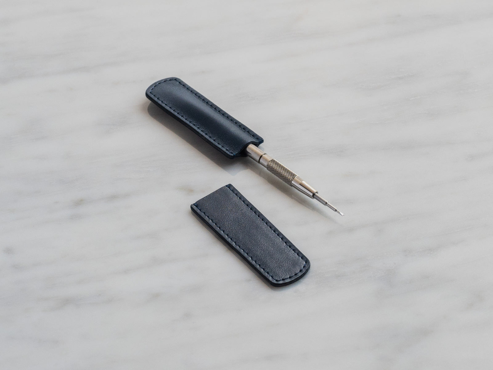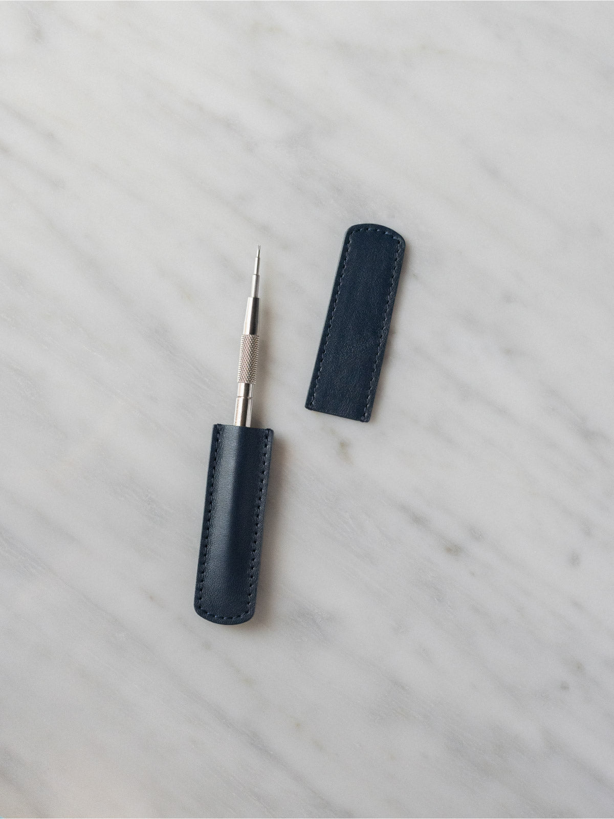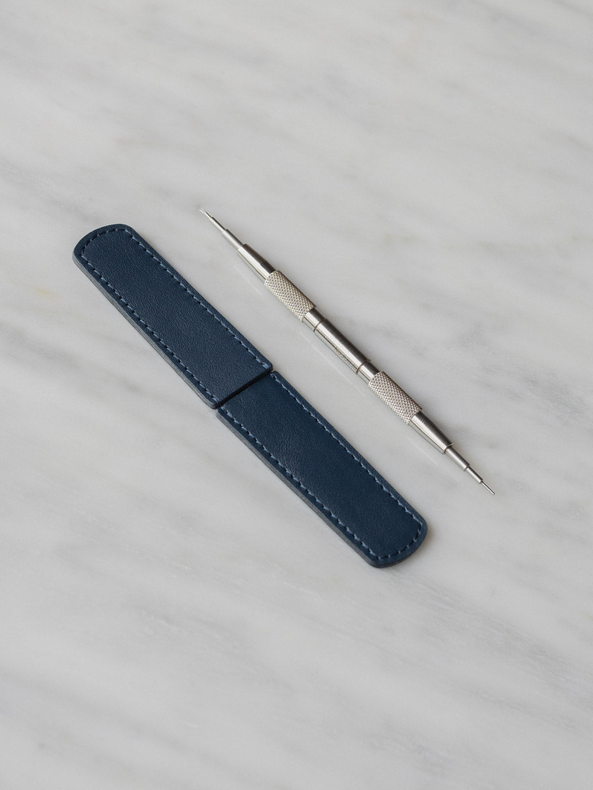 The spring bar tool sleeve is designed specifically to protect the tips of your spring bar tool. The sleeve is constructed of Italian full-grain Nappa leather and fits snugly over the two ends of your spring bar tool for safekeeping. The edges are burnished by hand to a smooth finish and side stitched for extra reinforcement.