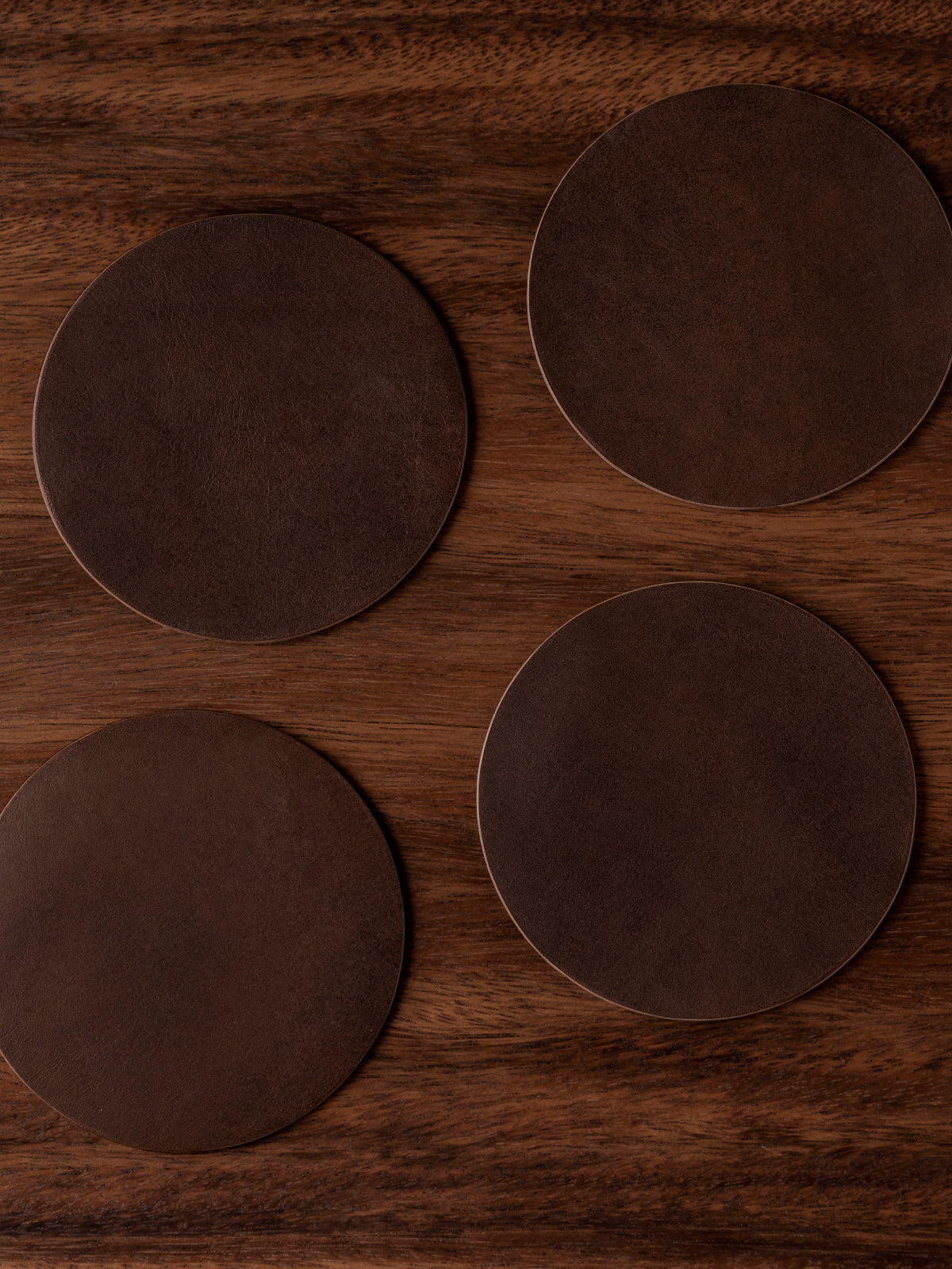 The natural oils in the leather will age the coasters beautifully, gradually gathering a deep and glossy patina with time and use.