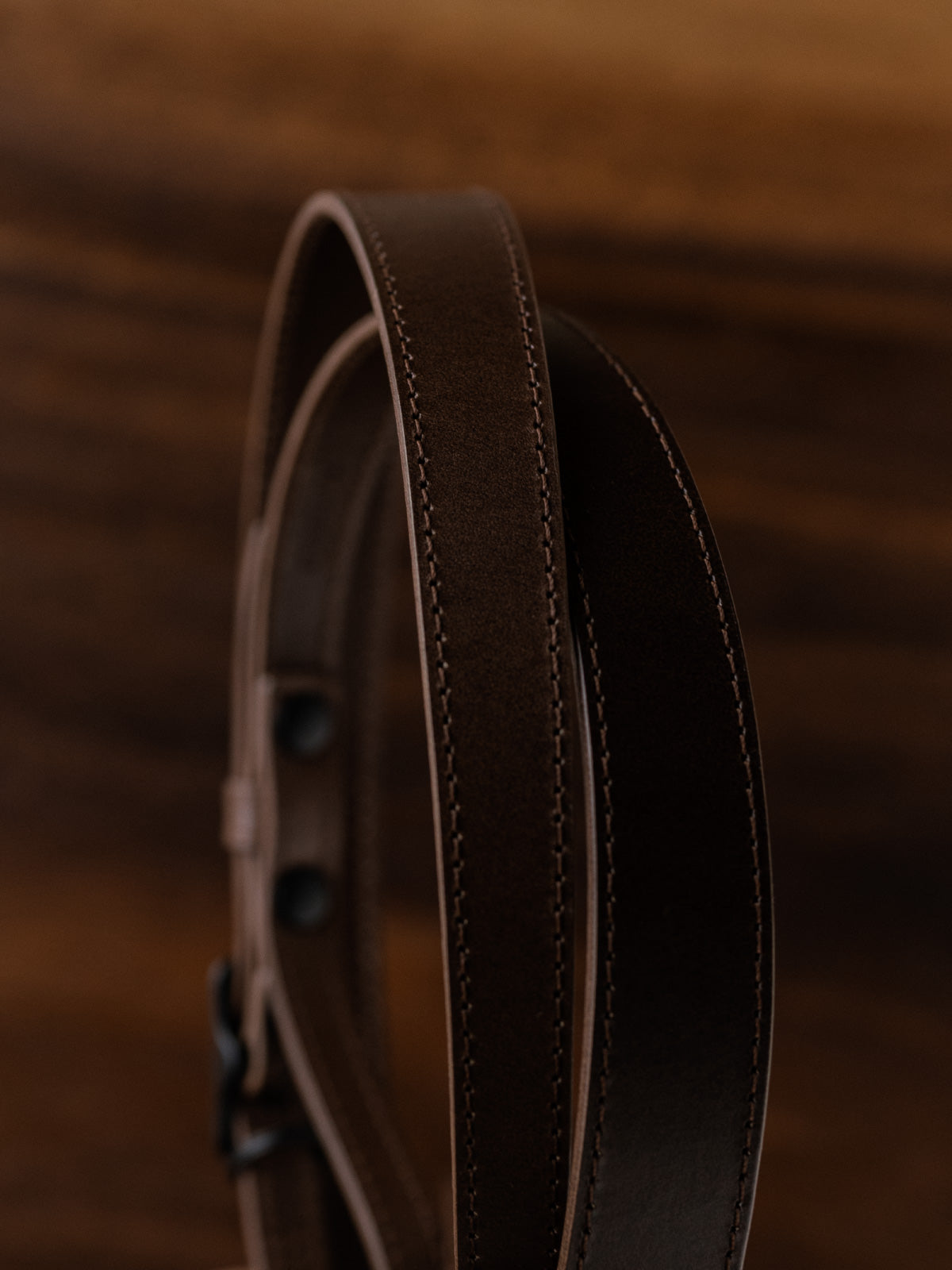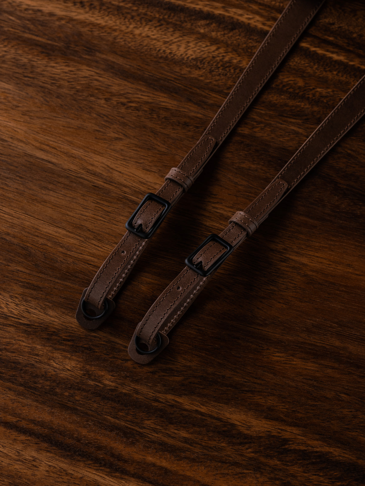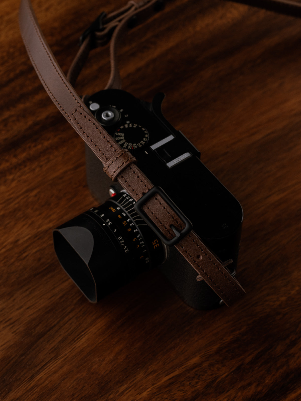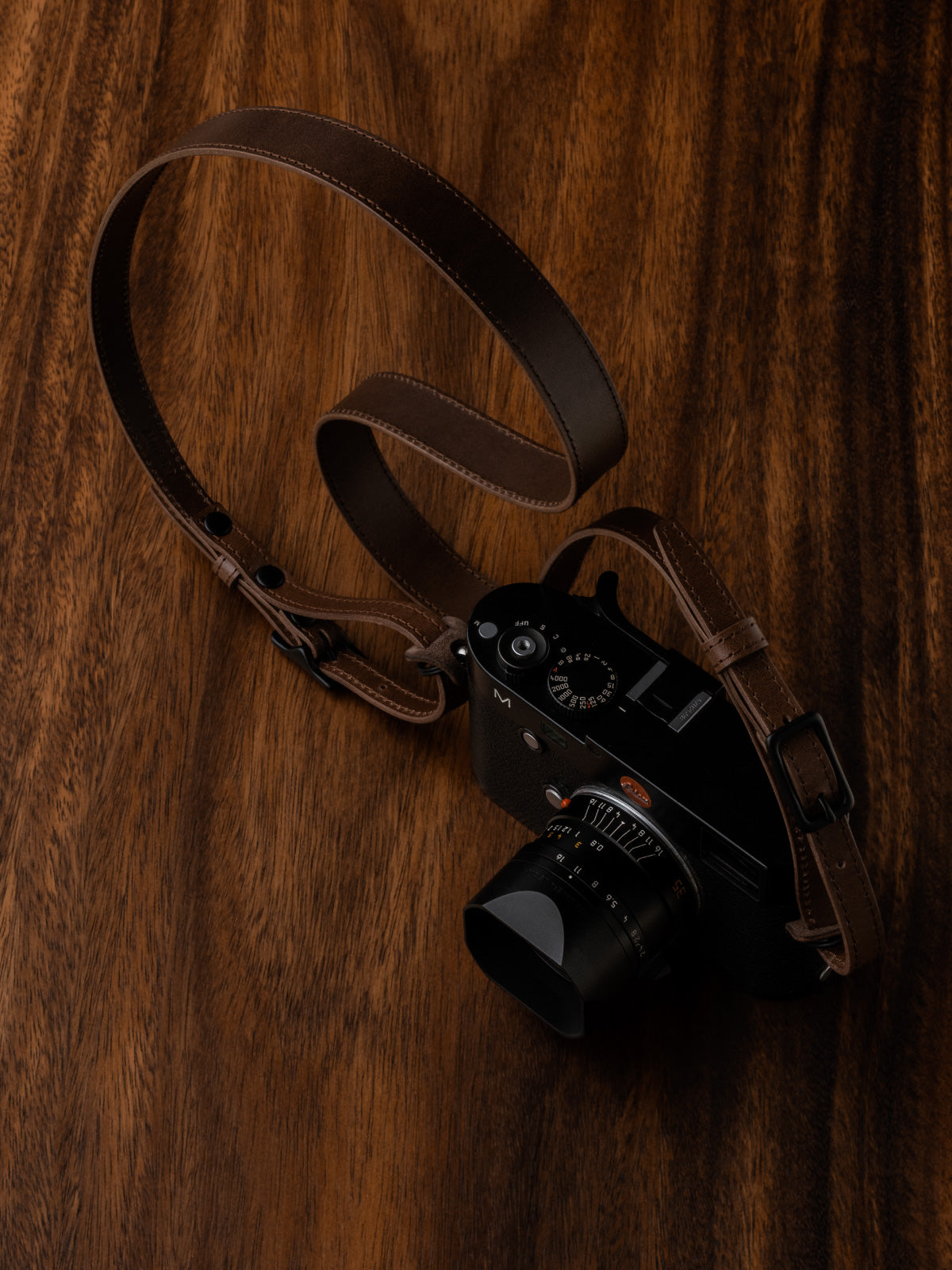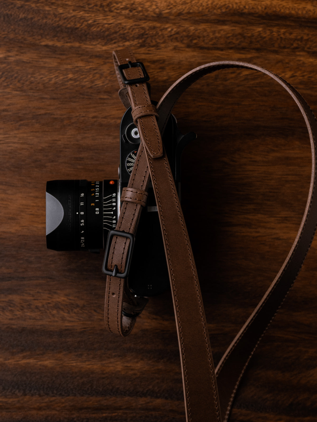 All of the hardware—including the center bar buckles, double-capped rivets, and split rings—are plated in a highly durable matte black PVD coating, adding to the stealth nature of mirrorless cameras.
