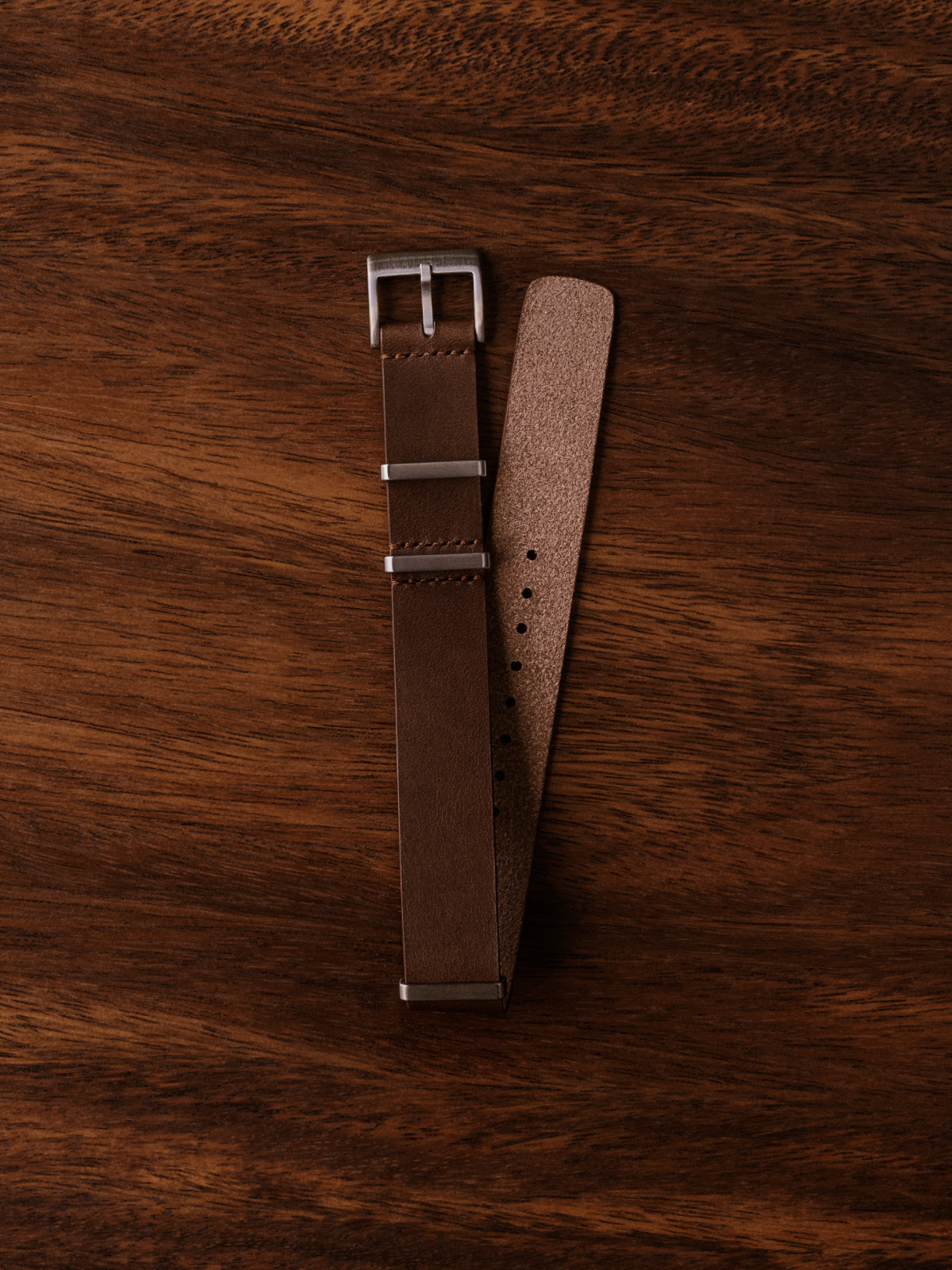 Our Leather Watch Strap is designed to elevate your watch. Italian vegetable-tanned Buttero leather is hand cut, and the edges are burnished to a smooth finish for comfort. A brushed stainless steel buckle and keepers are saddle stitched by hand to the strap for lasting durability. The strap's floating keeper ensures the end is neatly tucked in place.